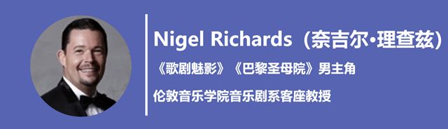 奈吉尔·理查兹,一位享誉国际的音乐剧歌手、演员和教授。曾在《歌剧魅影》中饰演魅影,库尔特·威尔的《酒店之歌》中饰演丹,《随你喜欢》中饰演杜克·弗雷德里克。其他作品包括《悲惨世界》中的安卓拉和《拿破仑》中的吕西安。他在《巴黎圣母院》(中国和韩国巡演版)饰演卡西莫多。奈吉尔曾在皇家阿尔伯特音乐厅举行的逍遥音乐会演出。伦敦音乐学院音乐剧系客座教授,伦敦艺术教育学院歌曲表演系主任。